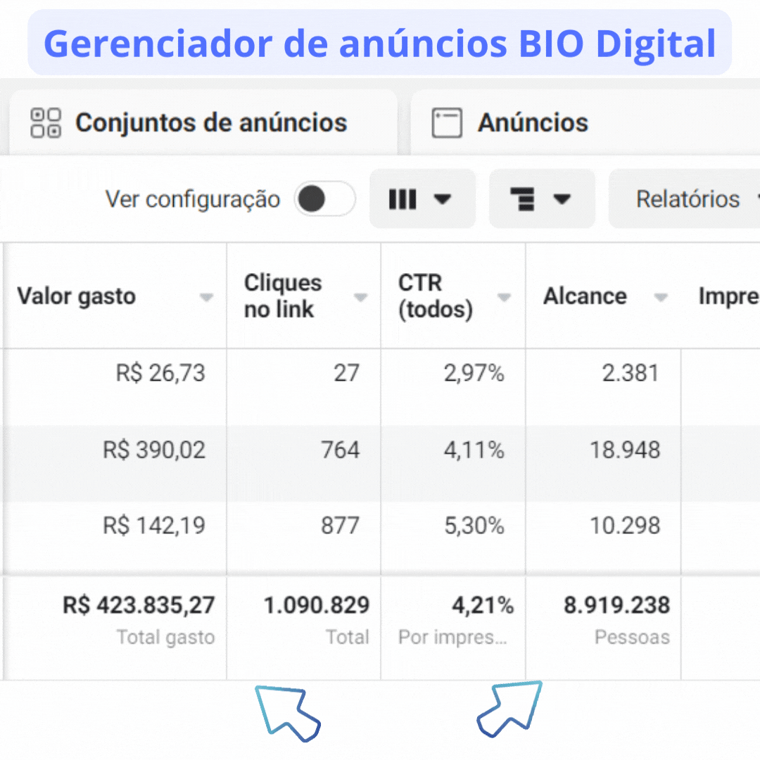 Na imagem acima mostra uma das contas da BIO Digital onde só com ela já investimos quase Meio Milhão de reais em anúncios de forma profissional.